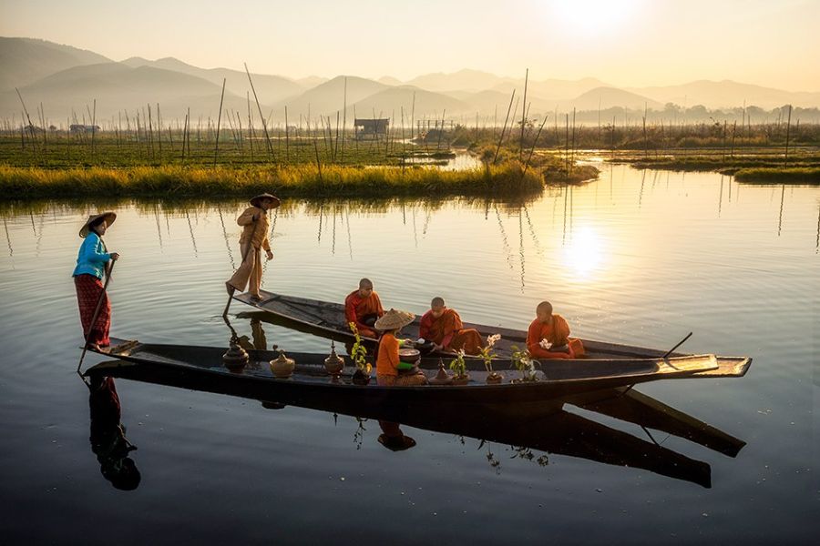• Inle Lake: Glide through floating villages and witness the unique leg-rowing fishermen.
